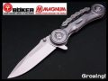 ■BOKER PLUS【ボーカー】■ ドイツ、ゾーリンゲンのBOKER【ボーカー】は、古くから“ツリー・ブランド”のニックネームで親しまれる200年以上の歴史のある会社大手のナイフ・メーカー。ドイツ・クラフトマン・シップに基づく厳格な品質管理をポリシーとして、常に歴史と伝統を守り高品質を追求してきた。ボーカーのポケット・ナイフは特に海外での評価が高く、生産されたナイフの半数以上がアメリカに輸出され、ハンター、アウトドア・スポーツマン達に愛用されている。そんなボーカーが自社のポリシーに沿っていくつかプロデュースをしたブランドの1つがBOKER PLUSだ。ボーカーがプロデュースしたのに恥じない品質の高さ、近代的なシルエット、確実なアクションをBOKER PLUSは提供してくれる。