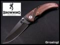 不用意な光の反射を抑えるブラックブレードにはブローイング社のコーポレートマークがレーザーカットされております。デュアル・サムスタッド付でワンハンドでのオープンクローズが容易になっております。ハンドルは木目のきれいなココボロを採用。「BROWNING」の文字が彫られております。持ち運びに便利なポケットクリップ付