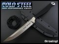 最低限必要なものまで削減されたナイフです。約5.5mmの刃厚のブレード切れ味バツグンです。頑丈なフルタング構造でハンドルにはコードが巻かれております。ナイフをしっかりロックする「Secure-Ex」製のシースが付属いたします。約90cmのボールチェーン付でネックナイフとしても使用可能です