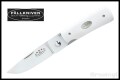 | 掌にすっぽりと隠れるくらい小さなナイフですが、ハンドルのエルフォリン(人工象牙材)と相まって、エレガントな雰囲気がある質実剛健なナイフに思えます。 | ||