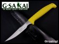 創業は1958年の歴史ある会社。世界に誇る刃物の町 岐阜県関に本拠地を置く世界的に有名なナイフメーカーだ。「関の孫六」で知られる刀剣造りの秘伝に新しい技術を加え、日本人独特の繊細な感覚の中で約200行工程にも及ぶ作業も、ビス1本に至るまで入念に仕上げる。又、数多くのメーカーのOEM生産を手がける。ガーバー社と技術提携し発売したシルバーナイトでの精巧なナイフメイクが世界にG・サカイの実力をしらしめた。