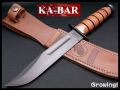 英国の有名なシェフィールド・カトラリー社に勤めていたナイフメーカーが少数人集まり,ニューイングランド州に小さな工場を建てたのがKA-BARのルーツ。それは,200年以上も前にさかのぼる。この伝統的な老舗メーカーは1800年代になると,ニューイングランド州からウェスターン・ニューヨークと北ペンシルベニアの辺りに拠点を移した。その時 38人で作った会社が今のKA-BAR社の歴史の始まりだ。イギリス発祥の会社はその伝統をアメリカに持ち込みハイクオリティーなナイフを作り続けている 「kill a bear」 熊ハンターが使用していたナイフに感謝し送られてきた手紙に荒々しくこう書いてありました 「k a bar」。会社はそれを商標「KA-BAR」として採用したのでした。第2次世界大戦時に海兵隊で使用され、その後 海軍、沿岸警備隊等の軍隊にも採用されました。非公式ながら朝鮮、ベトナム、イラクでも戦争でも使用されています
