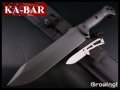 英国の有名なシェフィールド・カトラリー社に勤めていたナイフメーカーが少数人集まり,ニューイングランド州に小さな工場を建てたのがKA-BARのルーツ。それは,200年以上も前にさかのぼる。この伝統的な老舗メーカーは1800年代になると,ニューイングランド州からウェスターン・ニューヨークと北ペンシルベニアの辺りに拠点を移した。その時 38人で作った会社が今のKA-BAR社の歴史の始まりだ。イギリス発祥の会社はその伝統をアメリカに持ち込みハイクオリティーなナイフを作り続けている 「kill a bear」 熊ハンターが使用していたナイフに感謝し送られてきた手紙に荒々しくこう書いてありました 「k a bar」。会社はそれを商標「KA-BAR」として採用したのでした。第2次世界大戦時に海兵隊で使用され、その後 海軍、沿岸警備隊等の軍隊にも採用されました。非公式ながら朝鮮、ベトナム、イラクでも戦争でも使用されています