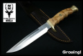 フィンガーグルーブで握りの良いハンティングナイフです。ムエラらしいナイフです。