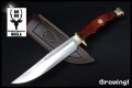 フィンガーグルーブで握りの良いハンティングナイフです。ムエラらしいナイフです。