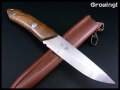| お店の対応は、いつも通り大変迅速で梱包も大変丁寧でした。 このナイフは、いつも佐治の甲伏(落人)を愛用していてその鋭さに感心したため、少し小ぶりのもので白紙全鋼という珍しさから購入しました。実は、鉈や剣鉈は所有していましたが、こうしたフルタングのいわゆる西洋式のナイフは初めてで、スパイダルコや肥後守との違いから、非常に興味深いものでした。美しく、ずっしり重い、鋭いナイフです。 全鋼のせいか、ステンレスのように研ぎにくい感がありましたが、何よりも美しさと切れ味に驚きました。和鋼の全鋼で西洋式ナイフも、錆を考えなければ味があって非常に便利なカービングナイフとして使用できそうです。 |