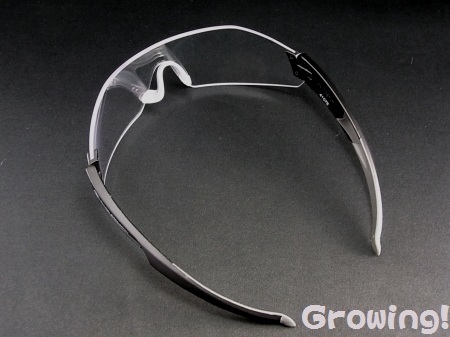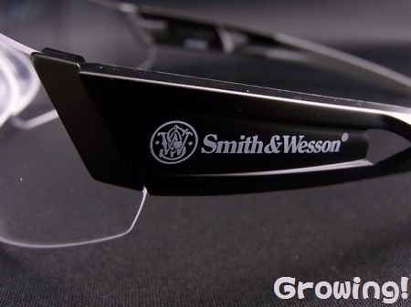 シリコン製のノーズパッド、テンプルと耳の部分はソフトラバーを使用しており、頭にしっかりフィットするようになっています。又 フレーム上部には「Smith&Wesson」のロゴが入っています。