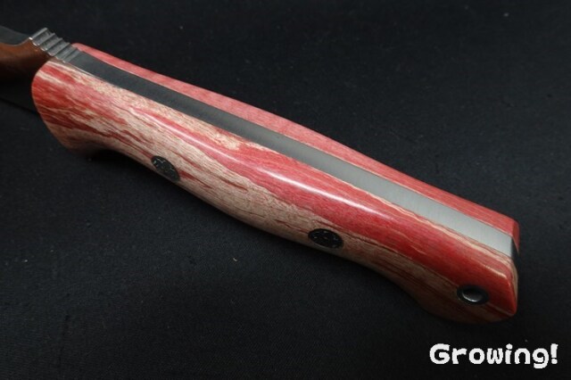 ■ハンドルマテリアル:Red & Teal Tigertail Maple Burl
