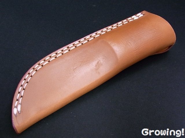 汎用性の高いドロップポイントのブレードは切れ味抜群のSANMAI III。芯材にVG-1を採用した三層のサンド鋼です。きれいにポリッシュされたブレードは刃厚 約5mmとしっかりとした厚みがあります。ハンドルは耐久性の高いマイカルタをしようしており手になじむようにシェイプされております。ナイフバランスを良くするために手間のかかるテパードタングが施してあります。付属するシースは使い勝手の良いポーチタイプ。カスタムの名にふさわしい手の込んだダブルステッチ加工がほどこされております
