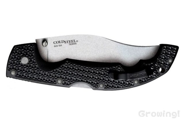新モデルはAUS10A鋼を使ったモデルになりました。30年以上コールドスチールで使われていたAUS8Aより耐久性があり研ぎ直しが容易で炭素含有が多くより切れる鋼材です