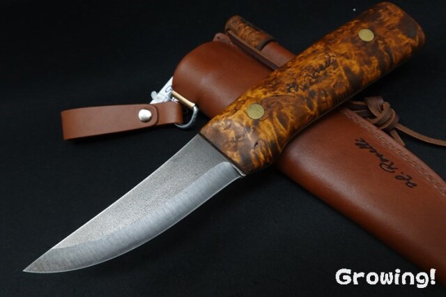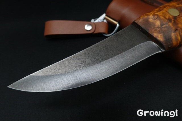 今のところですが、私が手に入れた数本のroselliナイフはハンドル材のカーリーバーチの模様にハズレがありません。