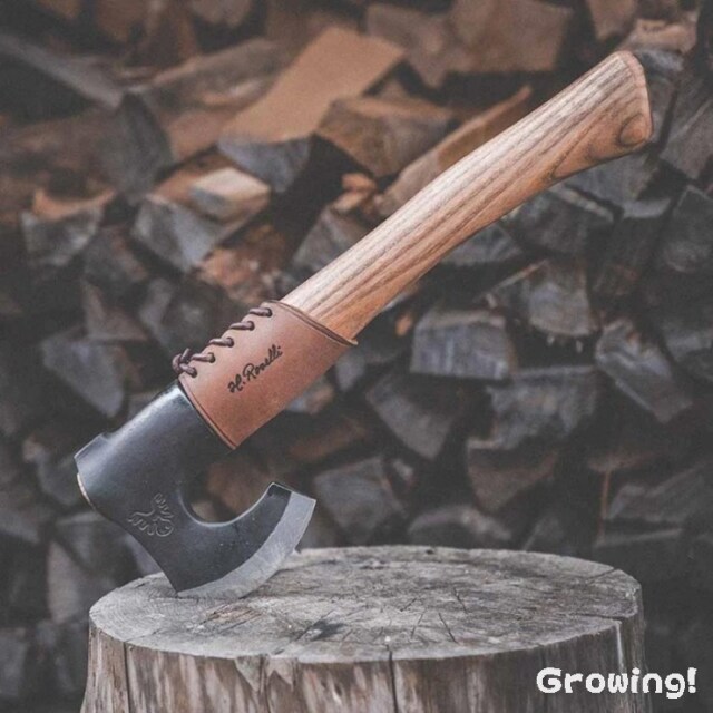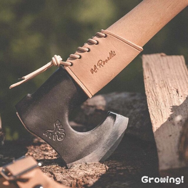 ロゼリ社手作りのオーバーストライクガードは、斧の柄を衝撃や打撃から守り、斧の柄の損傷を心配することなく斧を振るうことができます。オーバーストライクガードは、斧の柄のすぐ下の部分に装着し、斧の柄が斧の柄に当たるのを防ぎます。オーバーストライクガードを斧の柄に巻き付ければ、安心して薪割りができます。
