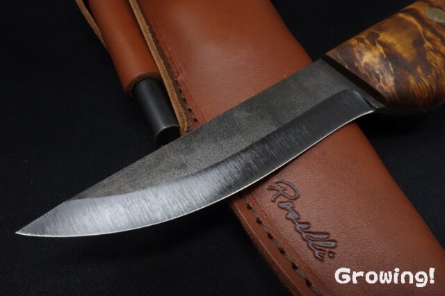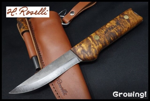 ■Roselli【ロゼリ】■ ヘイモ 4インチ ブッシュクラフトR42 【カーボン鋼】【カーリーバーチ】 【ファイヤースターター】Heimo フルタング フィンランド ■新品■