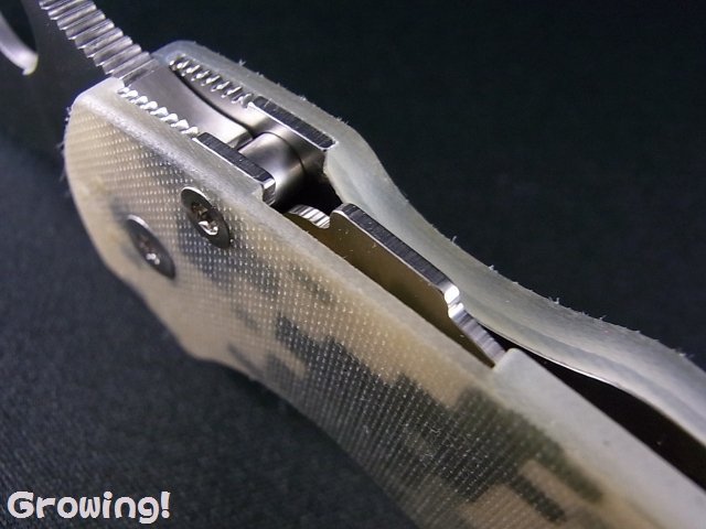 ブレードの上部とフィンガーチョイル、ライナーにセレーションが入っており、ナイフをしっかりと握りコントロールすることが出来るようになっています