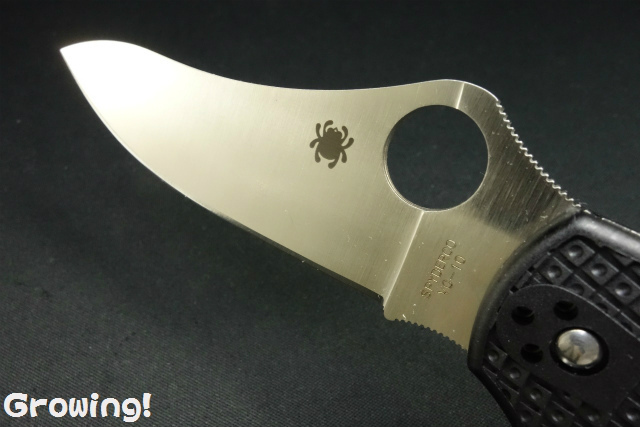特徴的なブレード形状ですが先端はドロップポイント。上部は人差し指をかけて細かい作業をするなど使い勝手が良いナイフです。