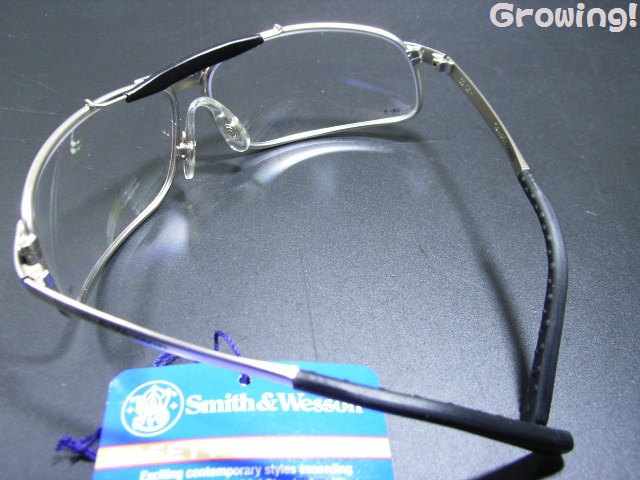 シューティング(射撃用)グラスとしての性能を求められていますから米国の製品安全基準ANSI Z87.1に適合しているのはもちろん、レンズには防弾ガラスとしても使われるポリカーボネイトを採用し、高度な安全性を実現しています。近距離からショットガンで撃っても傷つけど割れないそうです。シリコン製のノーズパッド、テンプルと耳の部分はソフトラバーを使用しており、頭にしっかりフィットするようになっています。又 つるには「Smith&Wesson」のロゴが入っています。