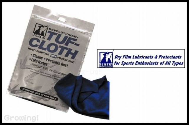 特にマリーンは超高性能と言っていい。タフクロスにタフグライドをほんの数滴垂らしクロスを専用容器に入れ暫し待つ。そのタフクロスでブレードをさっと拭くだけでナイフブレードに高性能ドライ被膜が形成される。被膜は非常に長持ちし、錆びやすい炭素鋼ブレードや非ステンレスブレードに特に適している。